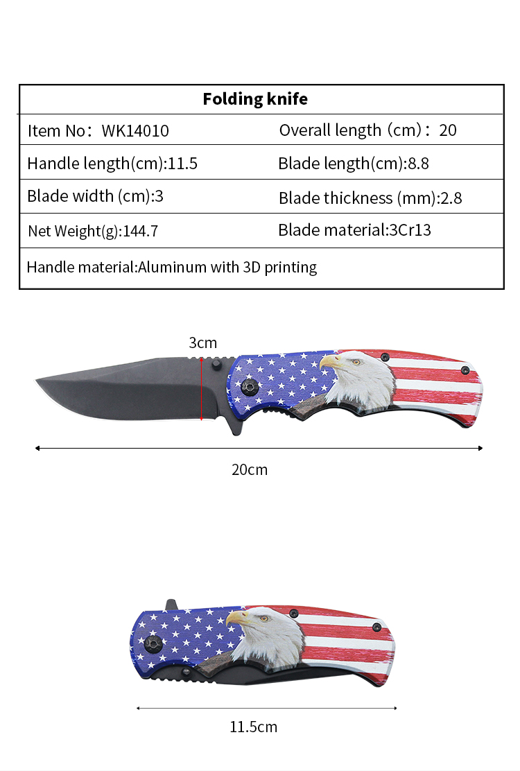 | Item | WK14010 Aluminum Pocket Folding Knife whit eagle printing |