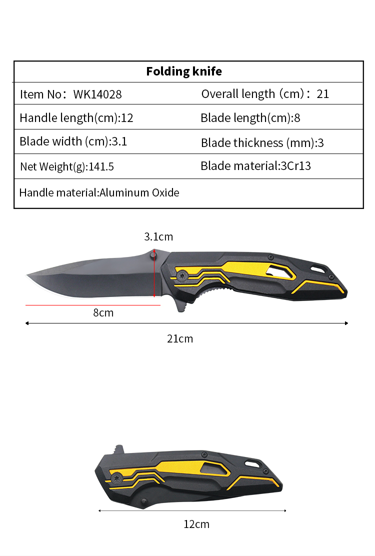 | Item | WK14028 Yellow Aluminum Pocket Folding Knife |