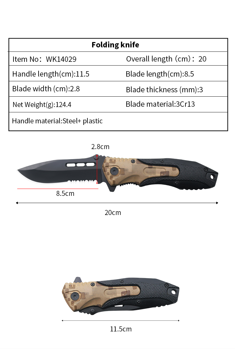 | Item | WK14029 Special Steel Plastic Pocket Folding Camping Knife |