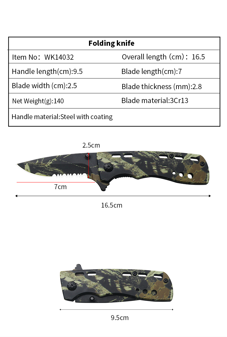 | Item | WK14032 Special Steel Pocket Folding Camping Knife |