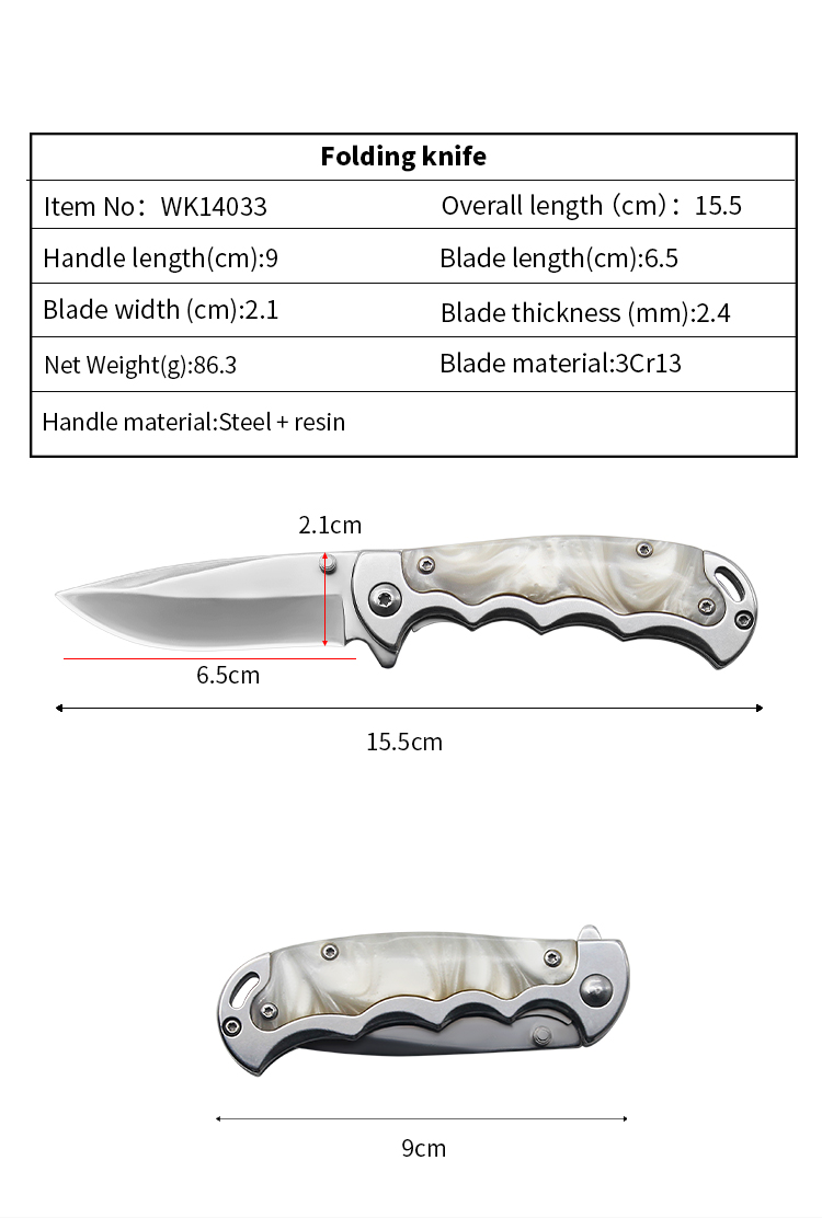 | Item | WK14033 White Resin Steel Pocket Folding Knife |