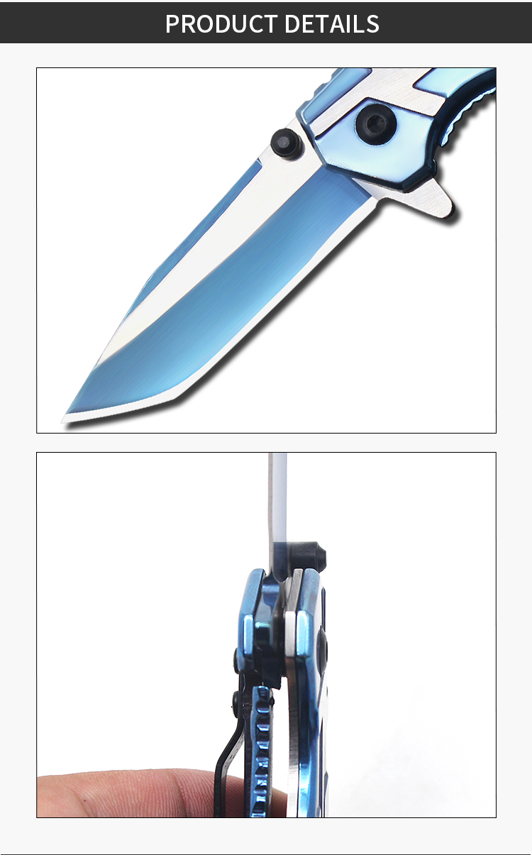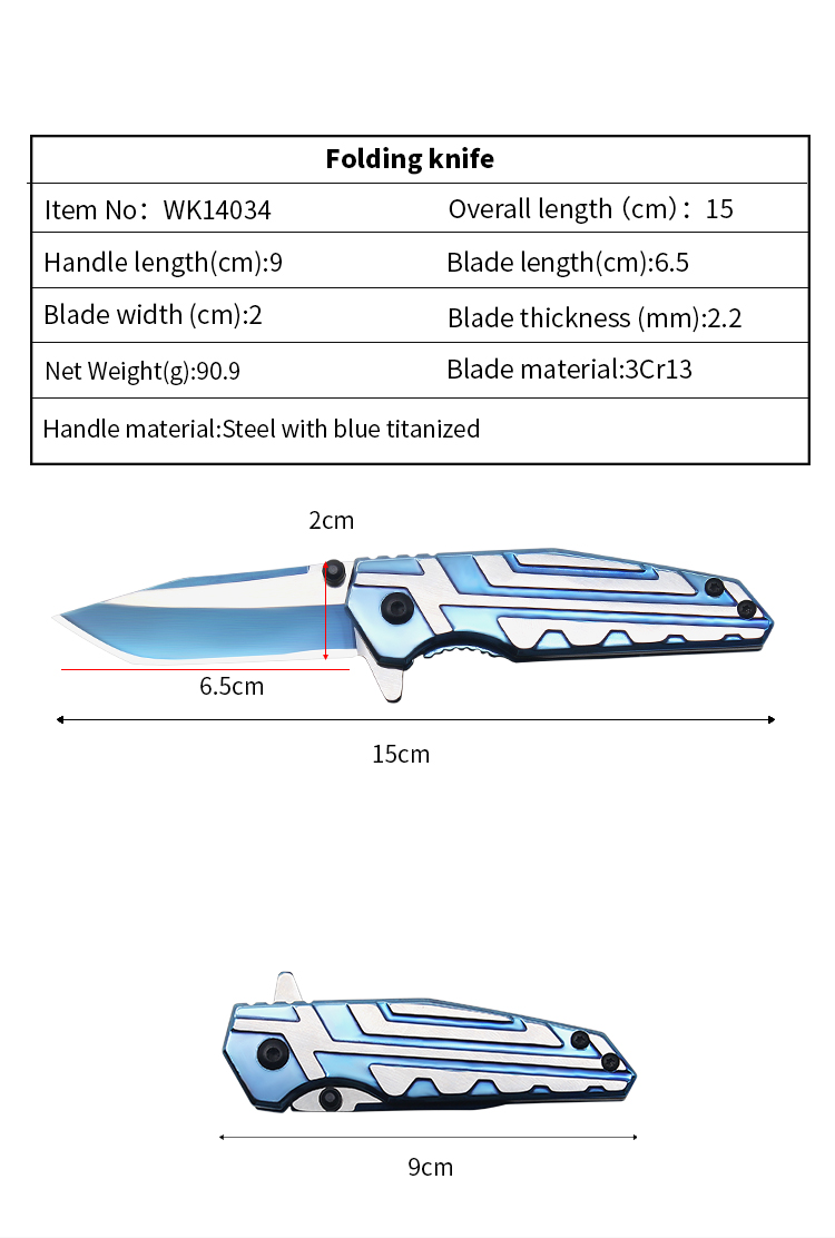 | Item | WK14034 Blue titanized Steel Pocket Folding Knife |