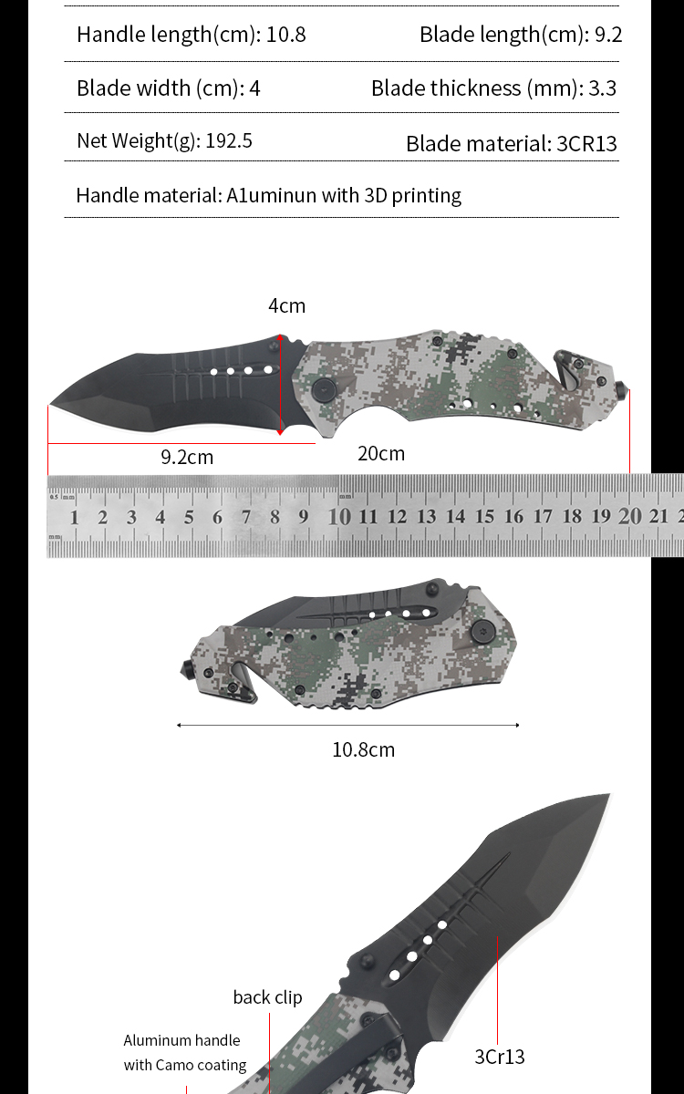 | Item | WK17002 Aluminum Survival Folding Knife with glass breaker |