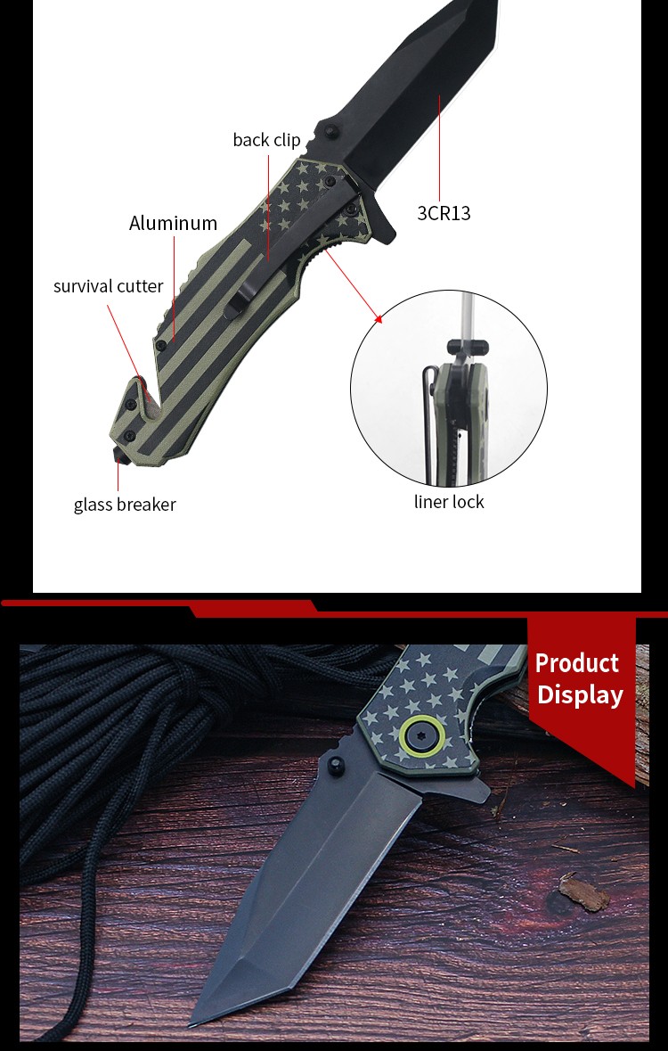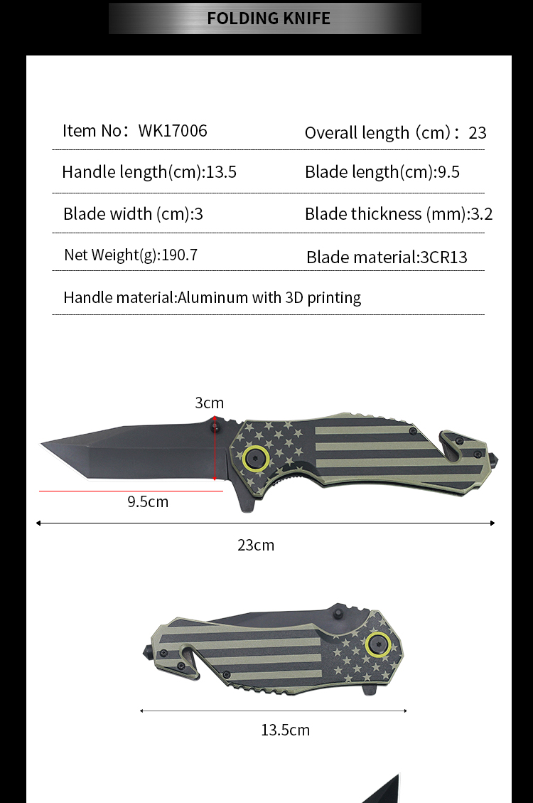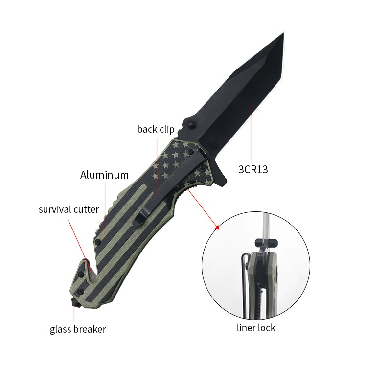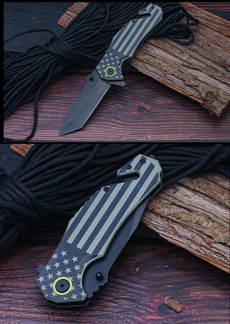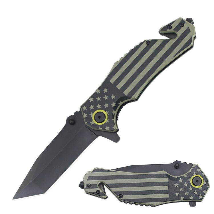 | Item | WK16007 Green Aluminum USA Flag Folding Knife |