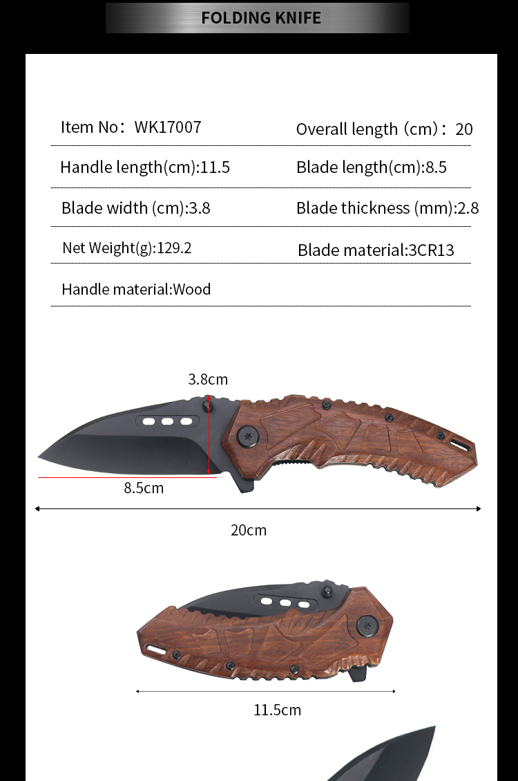 | Item | WK17007 High Quality Wood Folding Combat Knife |