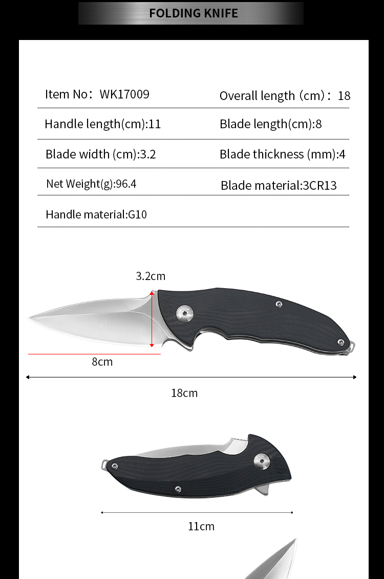 | Item | WK17009 High Quality Black G10 Folding Combat Knife |