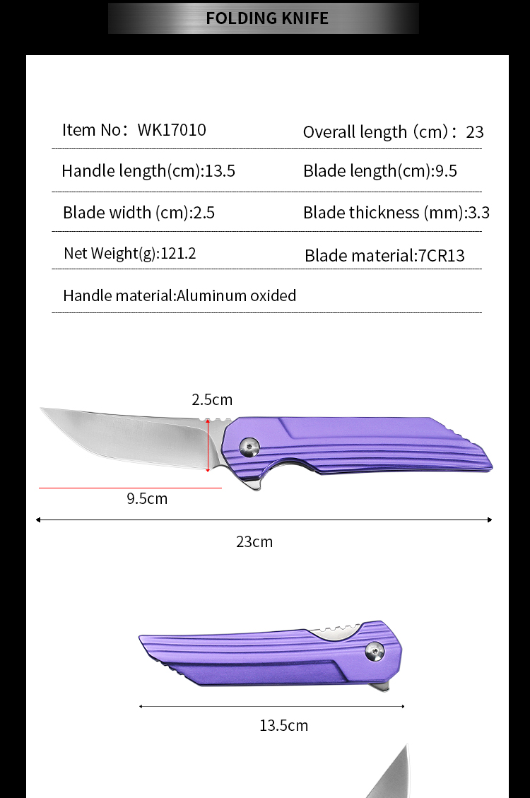 | Item | WK17010 High Quality Purple Aluminium Folding Combat Knife |