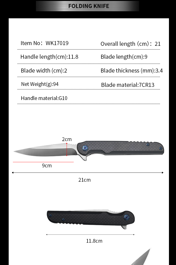 | Item | WK17019 Portable G10 Pocket Camping Knife |