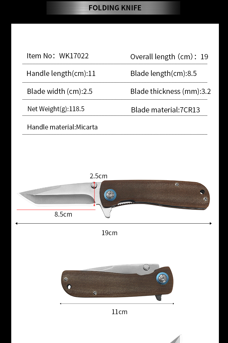 | Item | WK17022 Nice Micarta Pocket Camping Knife |