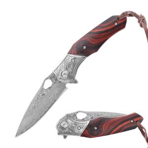 WK11013 Wood Handle Damascus Blade Pocket Folding Knife