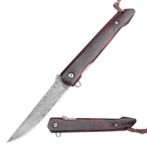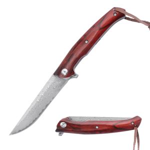 WK11015 Small Wood Handle Damascus Blade Pocket Folding Knife
