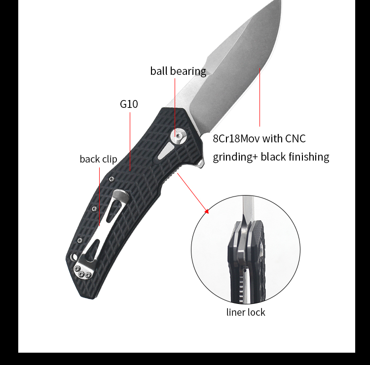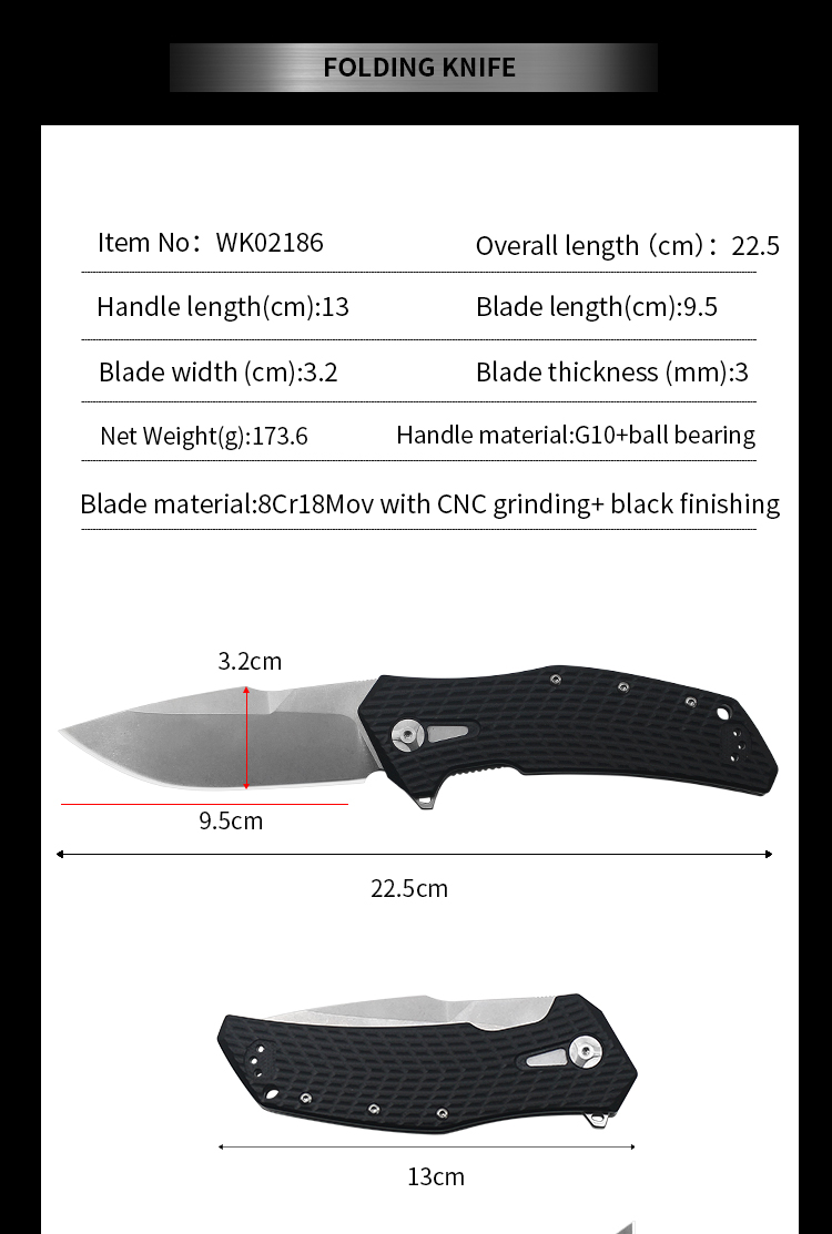 | Item | WK02186 Black G10 CNC Grinding Blade Camping Pocket Knife |