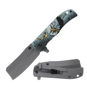 WK06397 Steel Print Handle Folding Outdoor Pocket Hunting Knife